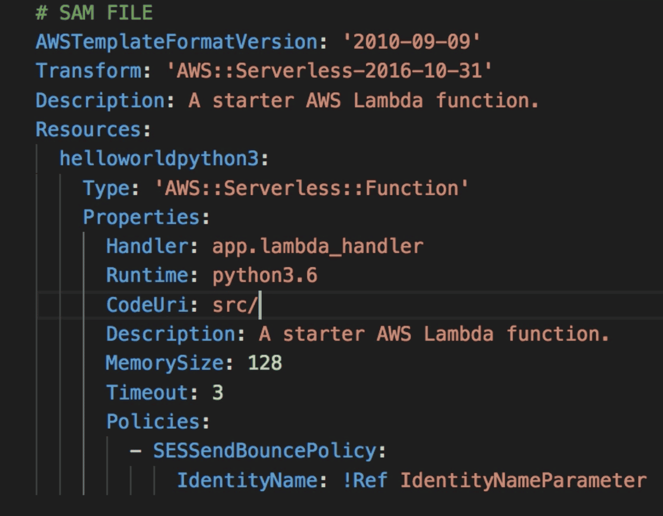 AWS::Serverless-2016-01-31indicate its a SAM tamplate for Cloudformation to transform into cloudformation template