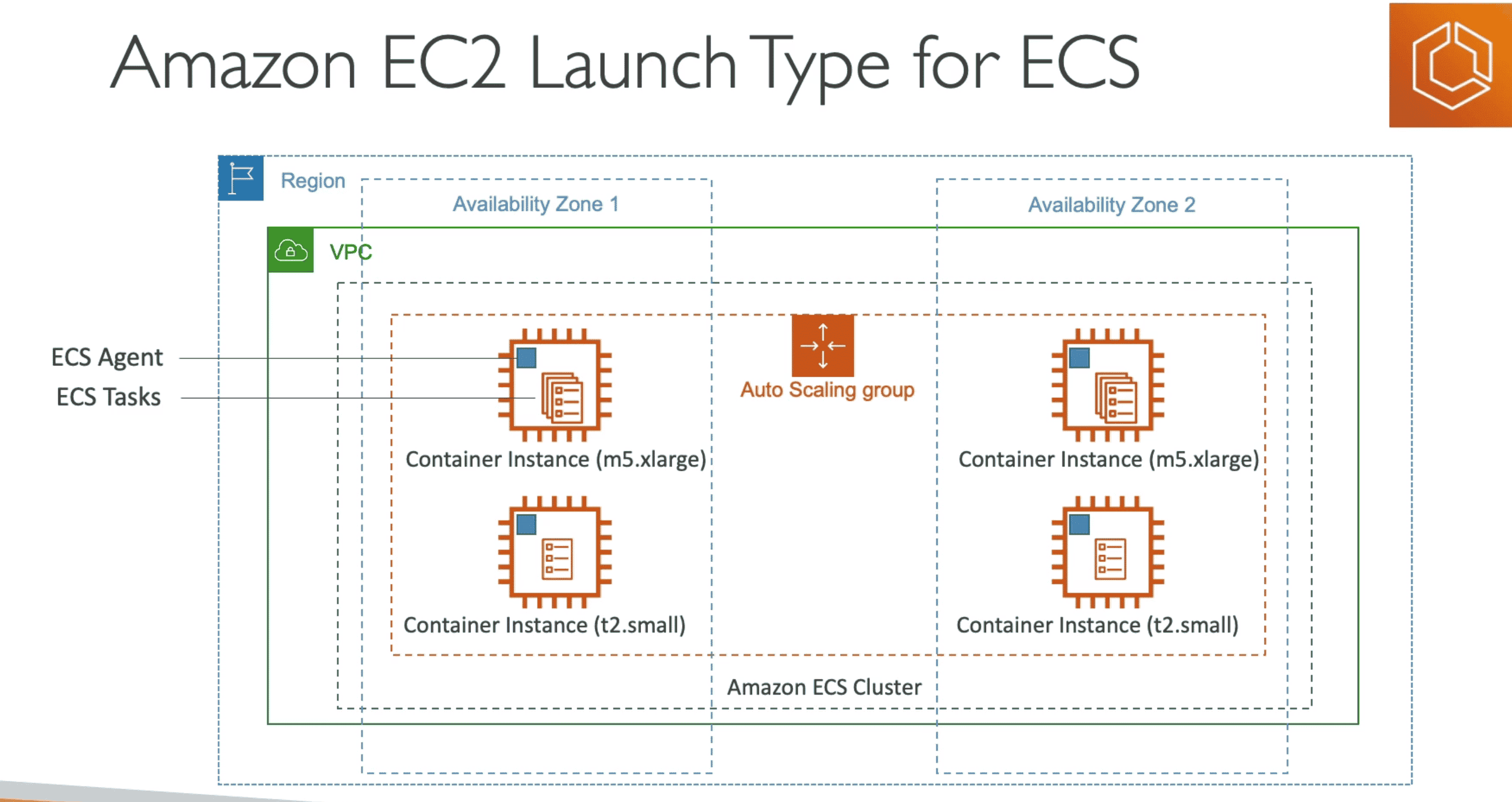 - Must run on EC2 instance to run ECS
