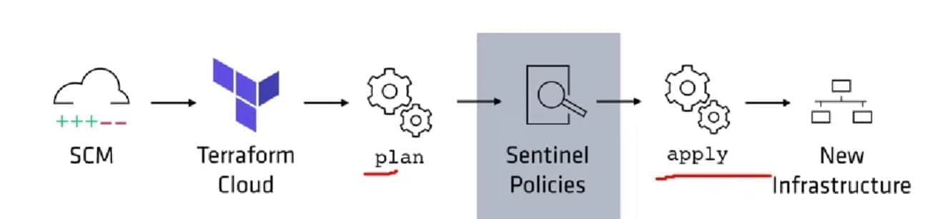 terraform plan, Terraform Cloud checks whether the plan obeys policy to determine whether it can be applied.
