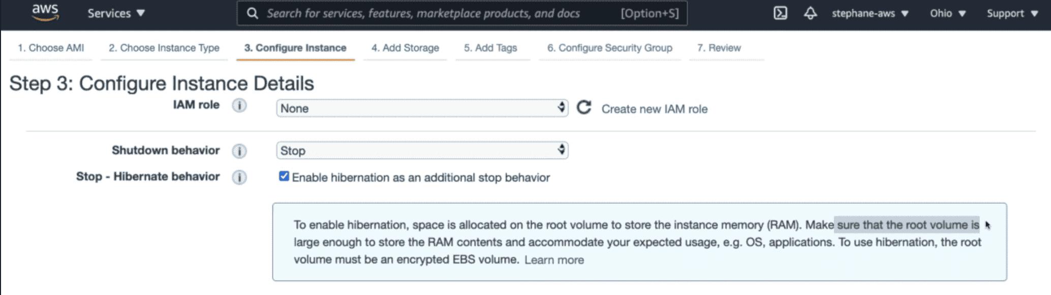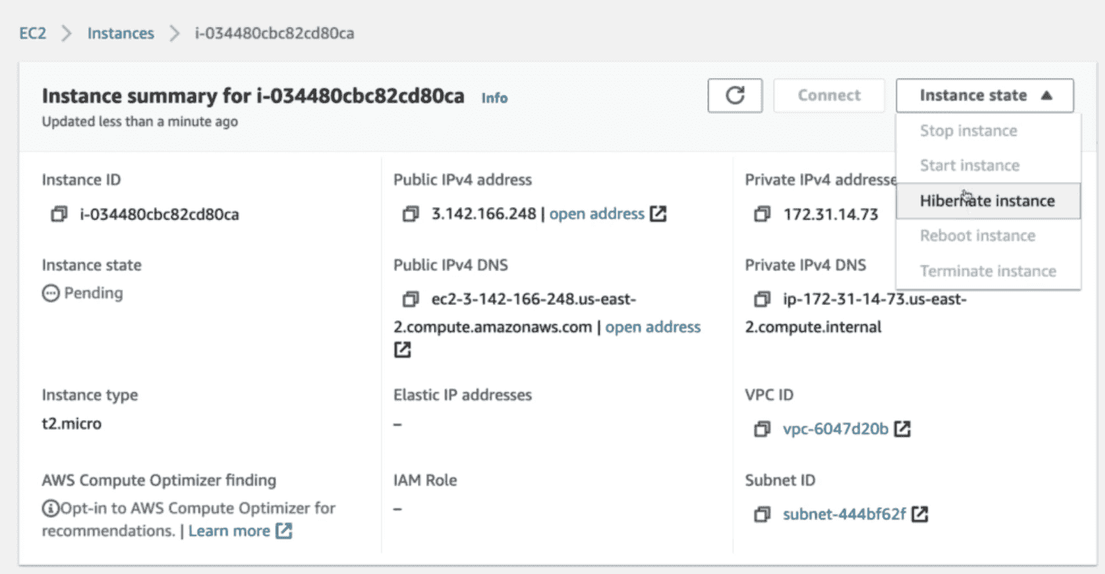 - Stop instance
