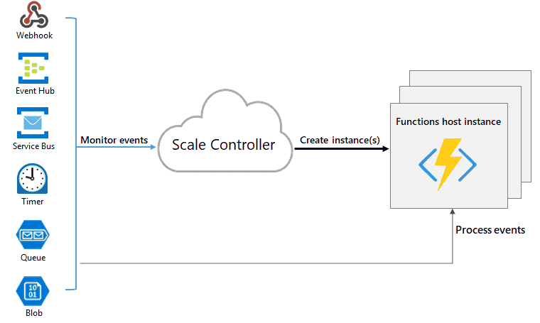 - Scales automatically: Functions host Instances are dynamically added and removed based on the number of incoming events.